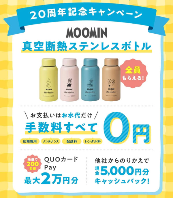| 月額 内訳 | ■水代:3,240円 (11.5L×2本) ■サーバー代:無料 |