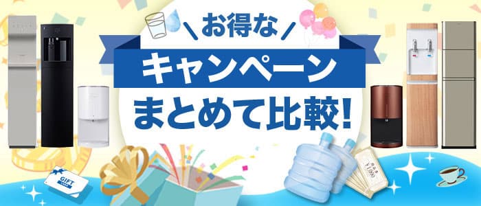 現在実施しているウォーターサーバーのキャンペーン・特典を各社まとめて一挙に比較しています。