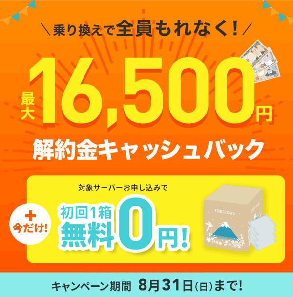 • 他社解約金を最大16,500円キャッシュバック【全員】
