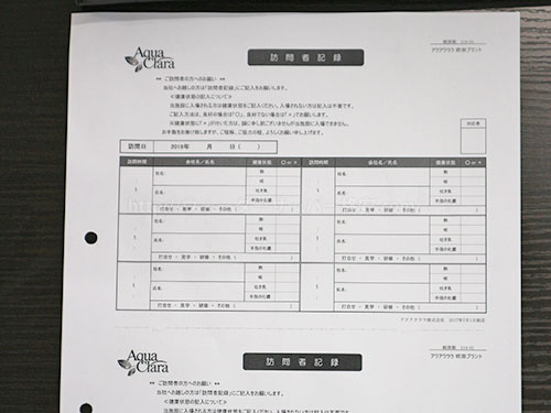 工場の中に入るためには、訪問者の健康状態をチェックする用紙への記入が必要でした。