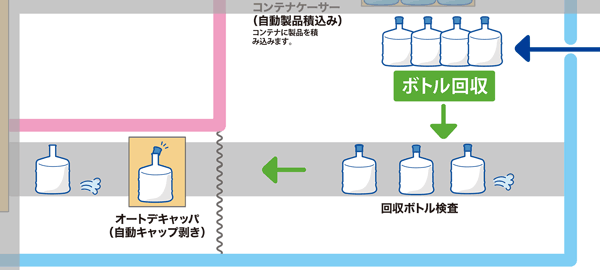 - アクアクララの工場見学(回収ボトルの検品~出荷)