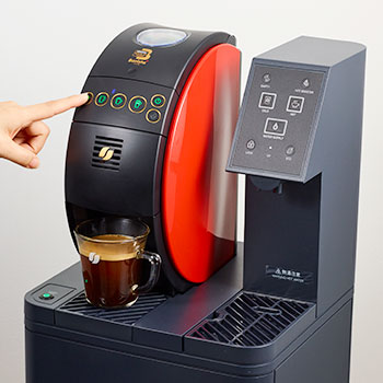 左側がコーヒーマシン、右側がウォーターサーバーになっています。(コーヒーと冷温水の同時使用はできません)