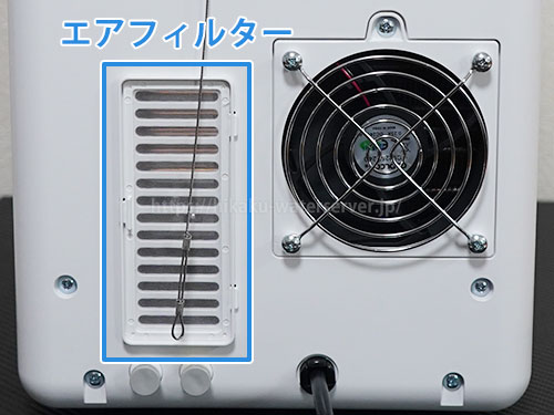 出水口や貯水タンクのお手入れは、その他の水道水補充型ウォーターサーバーも同様に必要ですが、プティオの場合には、追加で背面エアフィルターの掃除が必要です。