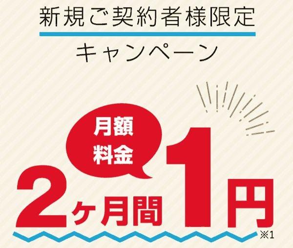 2ヶ月1円キャンペーンを適用しない場合でも、1ヶ月は1円で利用でき契約期間は2年(キャンペーン適用時3年契約)になり、どちらか申込時に選択できます。
