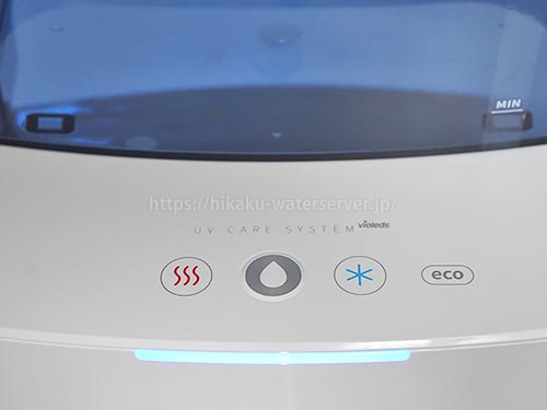 常温水は、冷水ボタンを1回押すと、表示ランプがホワイト色に変わり、常温水が抽出できます。