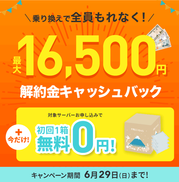他社からフレシャスに乗り換える際にかかった解約金(違約金)を最大16,500円キャッシュバック!