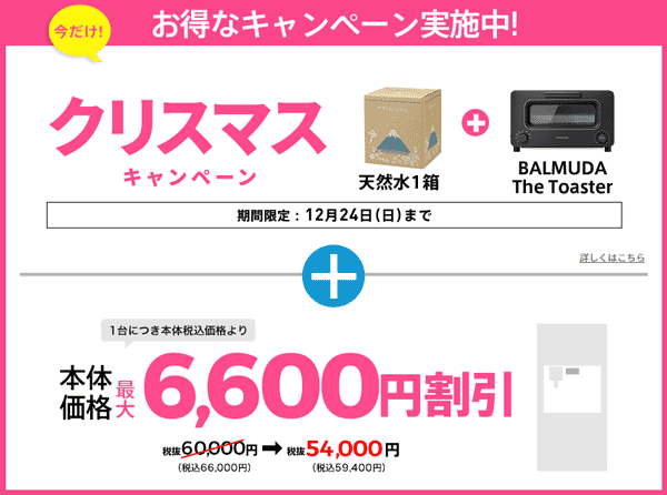 さらに、申込み全員に「初回の天然水1箱」をプレゼント。