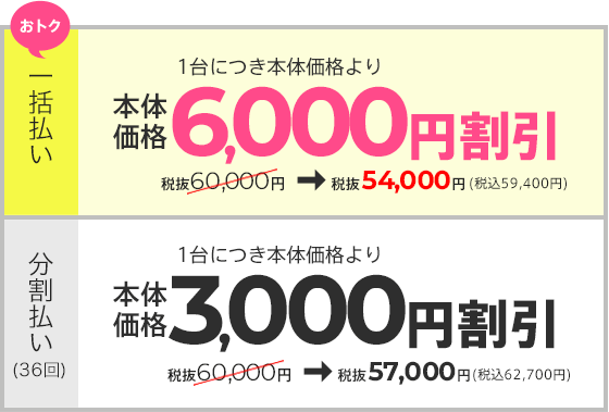 | 月間最低本数 | 【分割36回】 【一括購入】 都度注文も可能 (ノルマなし) |