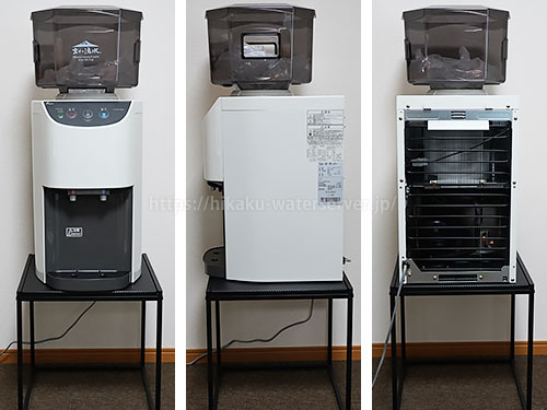 • 富士の湧水ウォーターサーバー卓上型の設置写真、正面・側面・背面