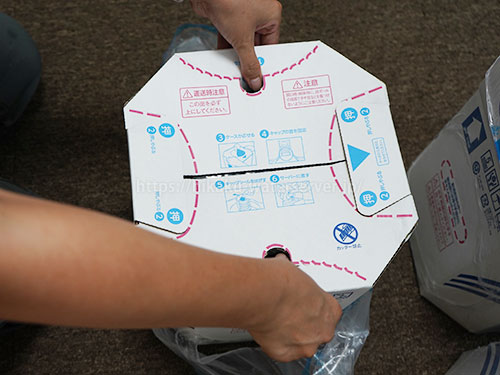 富士の湧水12Lパックのダンボールを抜き取る