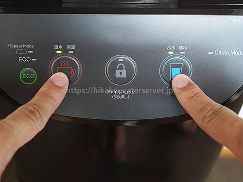 • 富士の湧水ウォーターサーバー操作パネルの温度切替ボタン