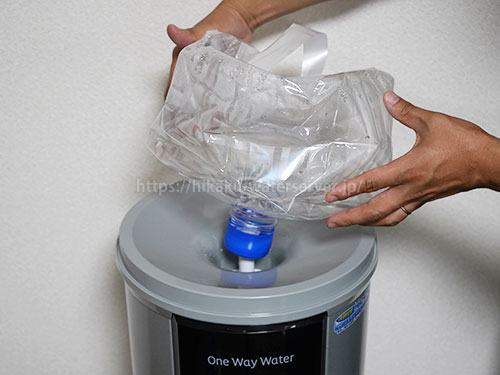 水をセットしたら、ボトルカバーをはめて交換完了です。