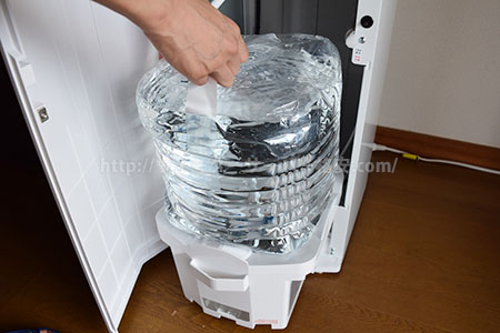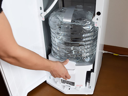 ダンボールから新しい水ボトルを取り出し、ボトルベースにセットします。