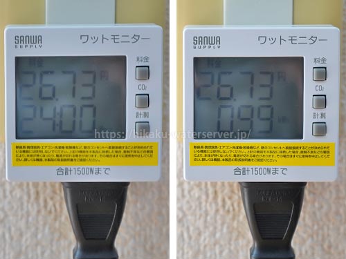 弱冷水モード通常の冷水温度約8℃を、少し高めの温度約15℃に設定します。