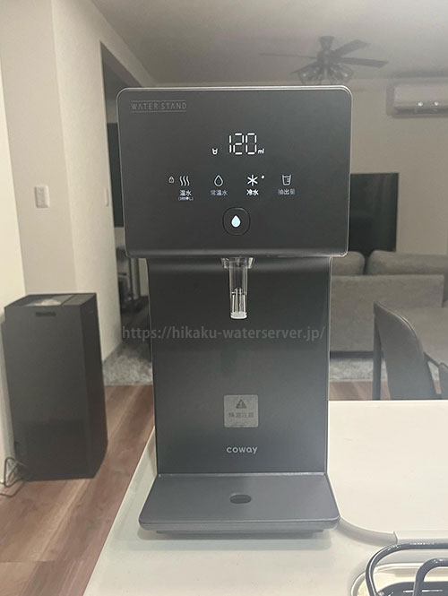 リビングに設置していて、飲みたいときに手間にならない位置に置いています。