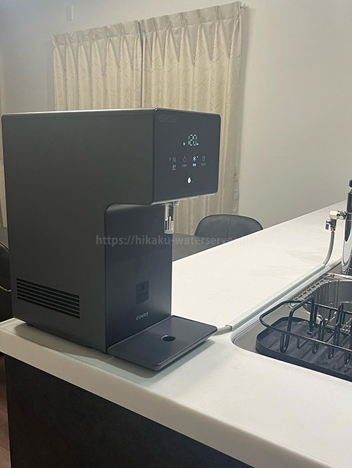 床置き型は下の子が歩くようになったらいじらないか少し心配でしたがチャイルドロックがついていたので火傷をすることもありませんでした。置いてある場所はダイニングテーブルの近くで食事中にお水が飲みやすいようにしています。