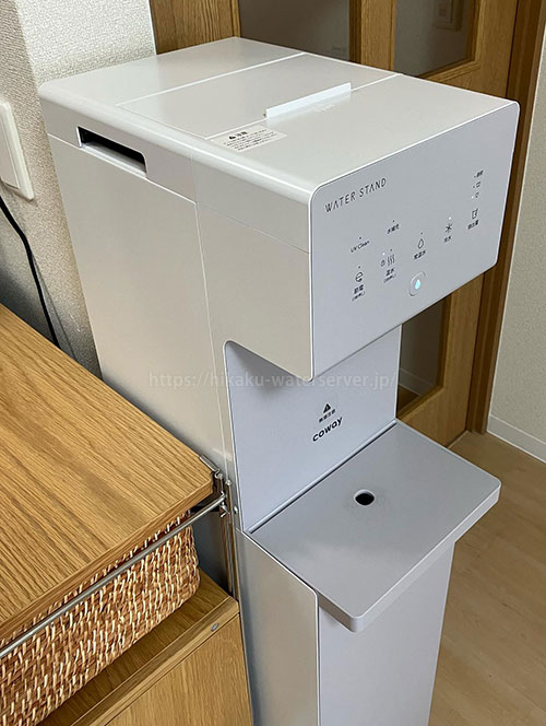 決め手は、水道水を使用するところと、ノズルまでが、殺菌効果の光で定期的に殺菌しているところと、値段がプレミアムウォーターより安かったところです。