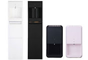 コーヒー機能付きボトル下置きの「スラット+カフェ」や、軽量パックでゴミも小さくたためる「デュオミニ」「デュオ」など利便性とデザインで人気。