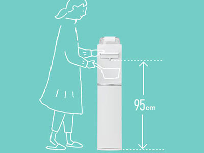 また、利便性も高く、別売りの非常用電源を使えば、停電時でも浄水した常温水が注げます