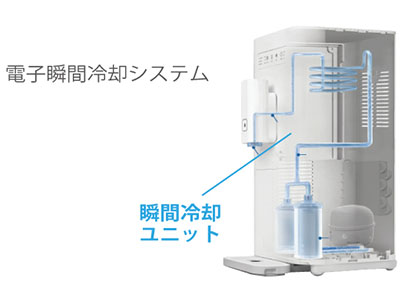 - 温水を瞬時に沸かし抽出する機能。温水タンクがないので保温電力が抑えられる。